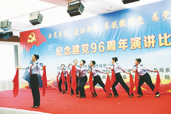 在中国共产党96岁生日来临之际,省地税局在美丽的河州——临夏组织开展了“立足岗位,建功立业,为税徽增光,为党旗添彩”为主题的。来自全省地税系统的47名地税干部心怀感恩、饱含深情地讴歌了中国共产党96年的光辉历程和丰功伟绩,颂扬了甘肃地税成立23年的创业艰辛和辉煌成就,用朴实如诗的语言讲述了甘肃地税系统涌现出的先进个人、道德楷模,全面展现了甘肃地税人健康向上、乐观进取的良好精神风貌和立足岗位、建功立业的时代风采,唱响了甘肃地税人对党的赞歌!